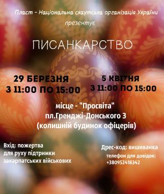 Пласт - Національна скаутська організація України спільно з волонтерами Руху підтримки закарпатських військових та учнівським врядуванням проведуть Майстер-класи з писанкарства.