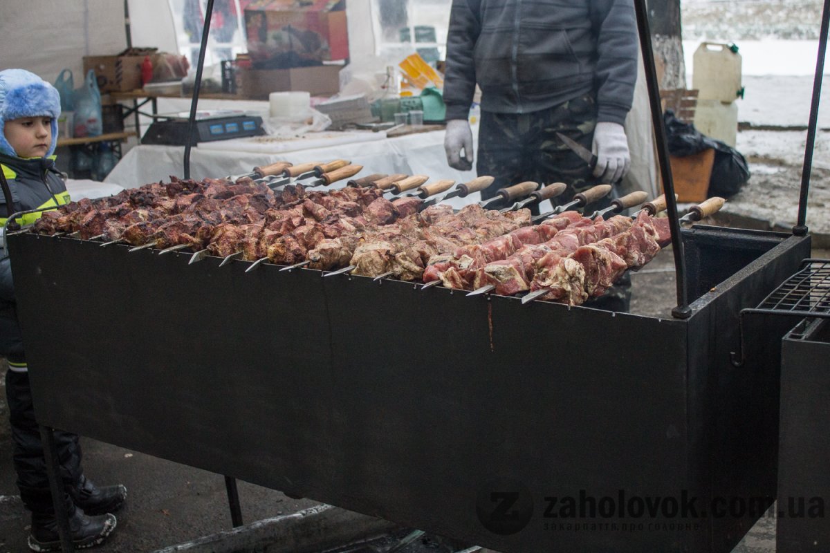 Можна поласувати і свіжими стравами, як от шашликом чи печеною картоплею. Є в продажу і традиційні для таких подій бублики.