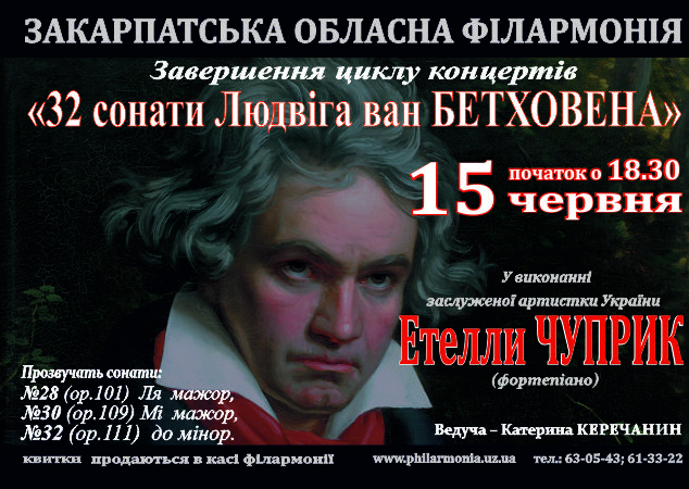 15 червня у Закарпатській обласній філармонії відбудеться заключний концерт з циклу «32 сонати Людвіга ван Бетховена».