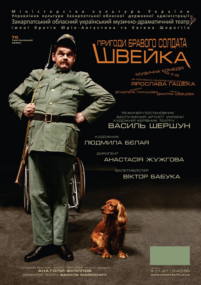 У неділю, 31 січня, Закарпатський муздрамтеатр покаже музичну комедію "Пригоди бравого солдата Швейка" (режисер Василь Шершун)