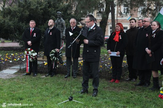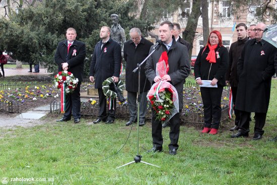 До учасників урочистостей звернулися Генеральний консул Угорщини в Ужгороді Йожеф Бугайла, народний депутат України Василь Брензович, голова Демократичної спілки угорців України Ласло Зубанич, представники міської та обласної влади.