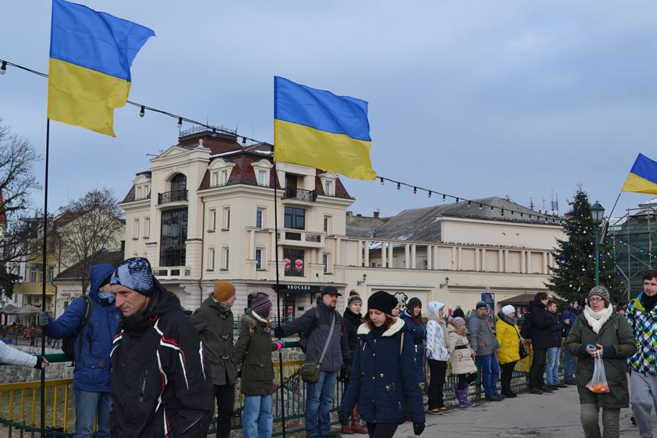 Сьогодні, 22 січня, в Ужгороді, на пішохідному мості, громада міста об’єдналась для утворення символічного Ланцюга єдности з нагоди Дня Соборності.