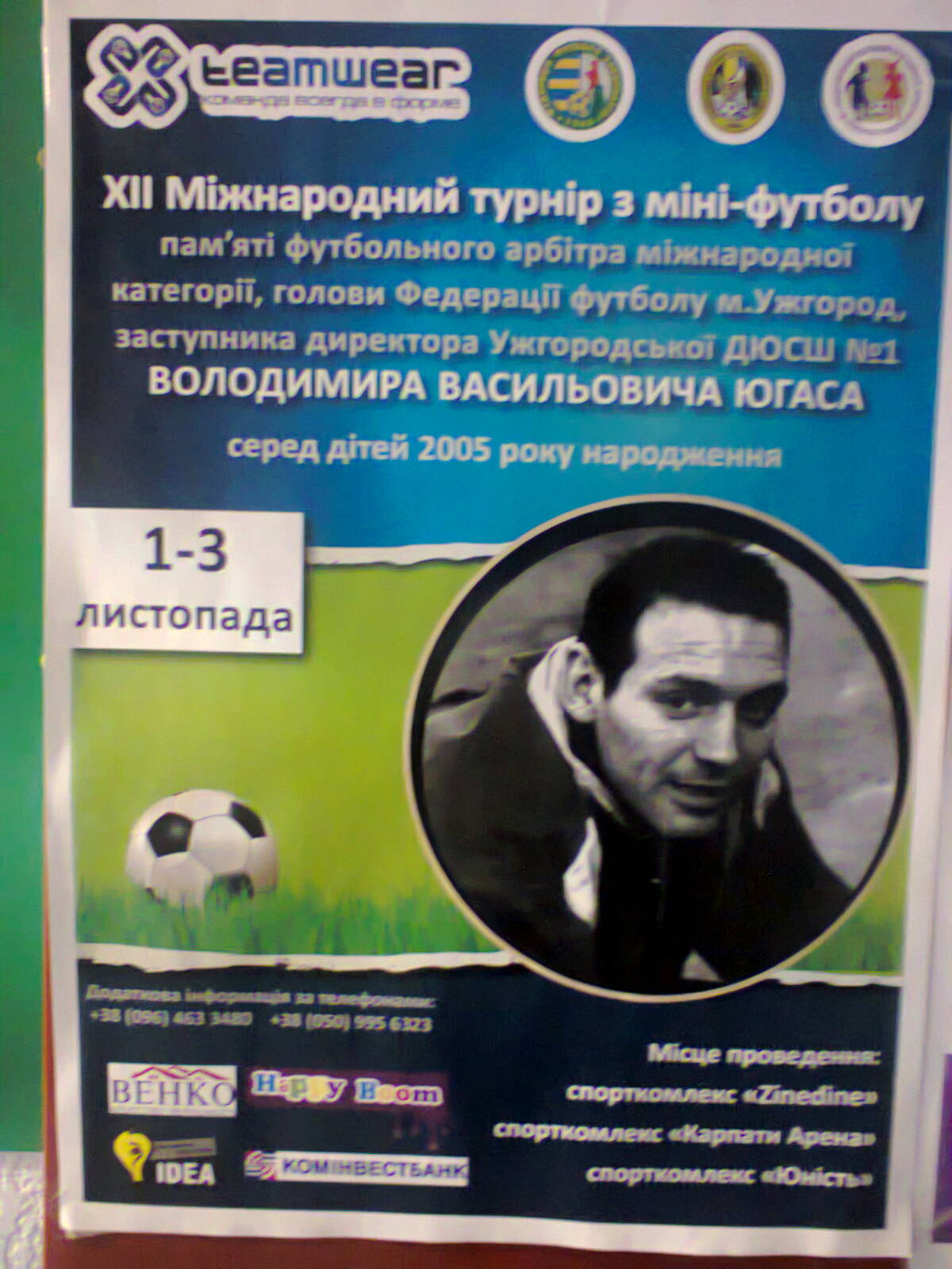 З 1 по 3 листопада під егідою Федерації футболу Закарпаття, Федерації футболу Ужгородського району, Закарпатського обласного відділення Національного олімпійського комітету України, благодійного фонду «За майбутнє покоління» проходив традиційний, уже 12-й, дитячо-юнацький турнір пам’яті арбітра міжнародної категорії (лайнсмена ФІФА), заступника директора Ужгородської ДЮСШ № 1, голови Федерації футболу м. Ужгород В.Югаса.