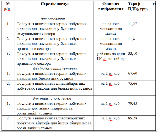 Нові тарифи на послуги з вивезення та захоронення твердих побутових відходів наберуть чинності з 1 травня 2016 року.