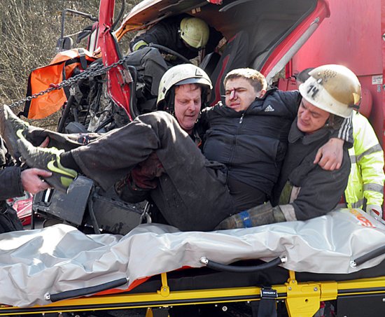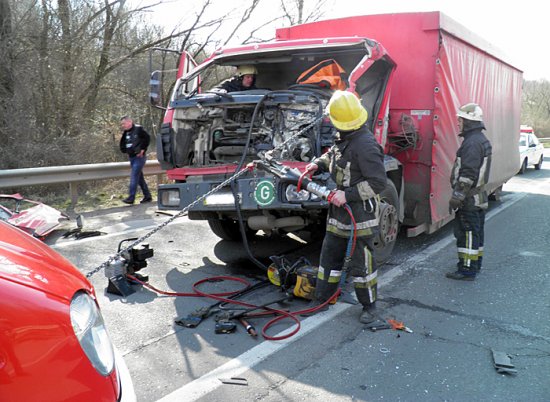 Для ліквідації наслідків ДТП виїхало одне відділення 14-ї державної пожежно-рятувальної частини. На місці події з’ясувалося, що в транспортних засобах перебували тільки водії. Водія вантажівки «Mercedes» після зіткнення затисло конструкціями в автомобілі. За допомогою гідравлічного інструмента рятувальники визволили чоловіка з понівеченої кабіни й передали до рук медиків із бригади швидкої допомоги. Водій автомобіля «SCANIA» самостійно вибрався з машини й допомоги рятувальників не потребував. Обставини ДТП встановлюють правоохоронні органи, - повідомляє Управління ДСНС України у Закарпатській області.