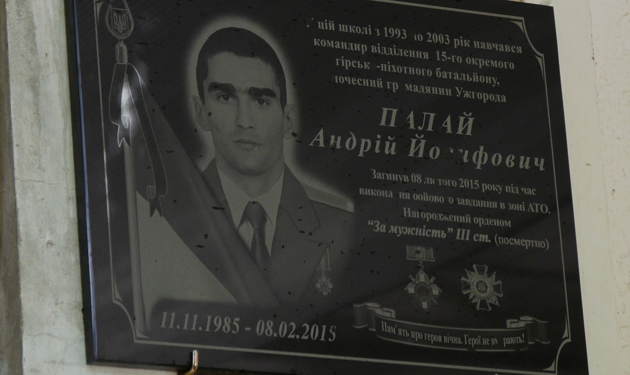 Меморіальну дошку ще одному полеглому на Сході Герою – ужгородцю Андрію Палаю встановили вчора на фасаді загальноосвітньої школи №19, у якій він навчався.
