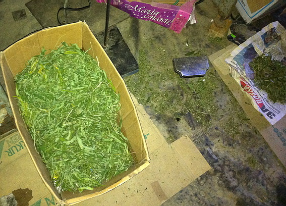 У кімнатах будинку знайшли пакунки, в яких містились наркотичні речовини марихуана та первитин. Окрім цього, були знайдені медичні шприци та перероблений пневматичний пістолет і один набій до нього. Марихуани в будинку назбиралося майже 1 кг, а загальна маса первитину становить близько 0,5 грам.