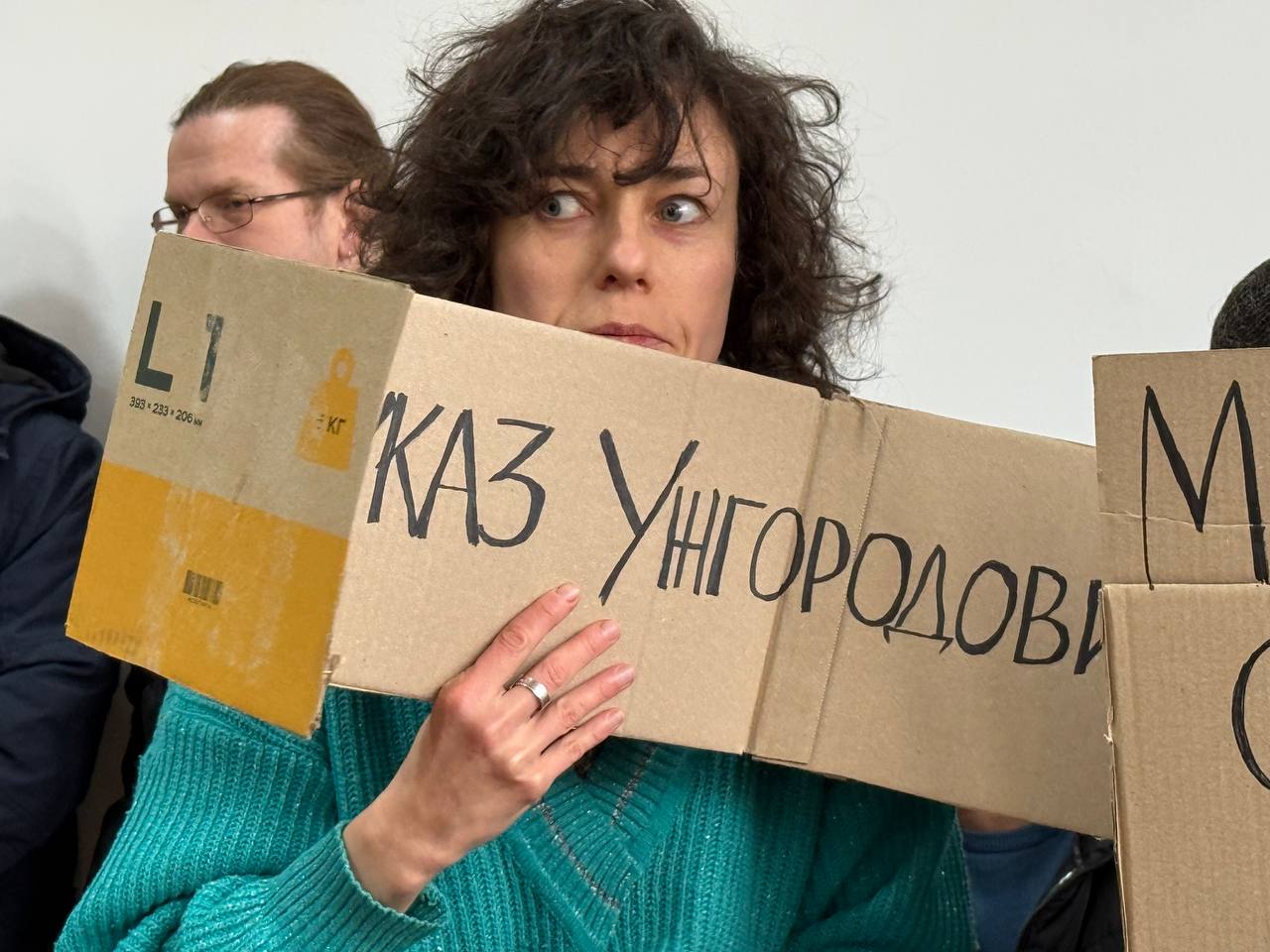 У великій залі Ужгородської міськради на площі Поштовій, 3 зібралися містяни та активісти. Люди прийшли, зокрема, з плакатами та картонками.