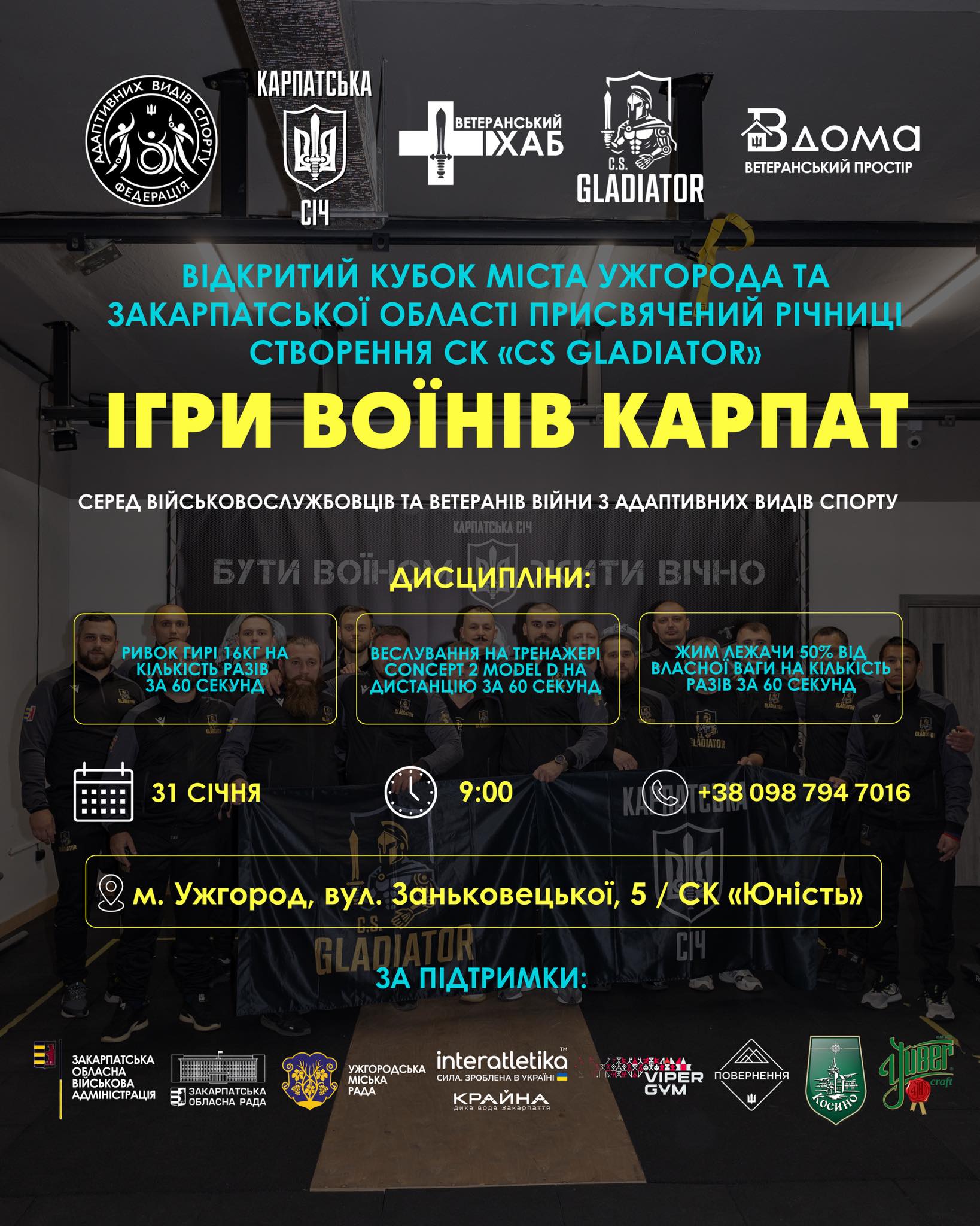 У суботу, 31 січня, в Ужгороді проведуть змагання із адаптивних видів спорту «Ігри воїнів Карпат» серед військовослужбовців та ветеранів. Охочих взяти участь закликають зареєструватися до 24 січня.