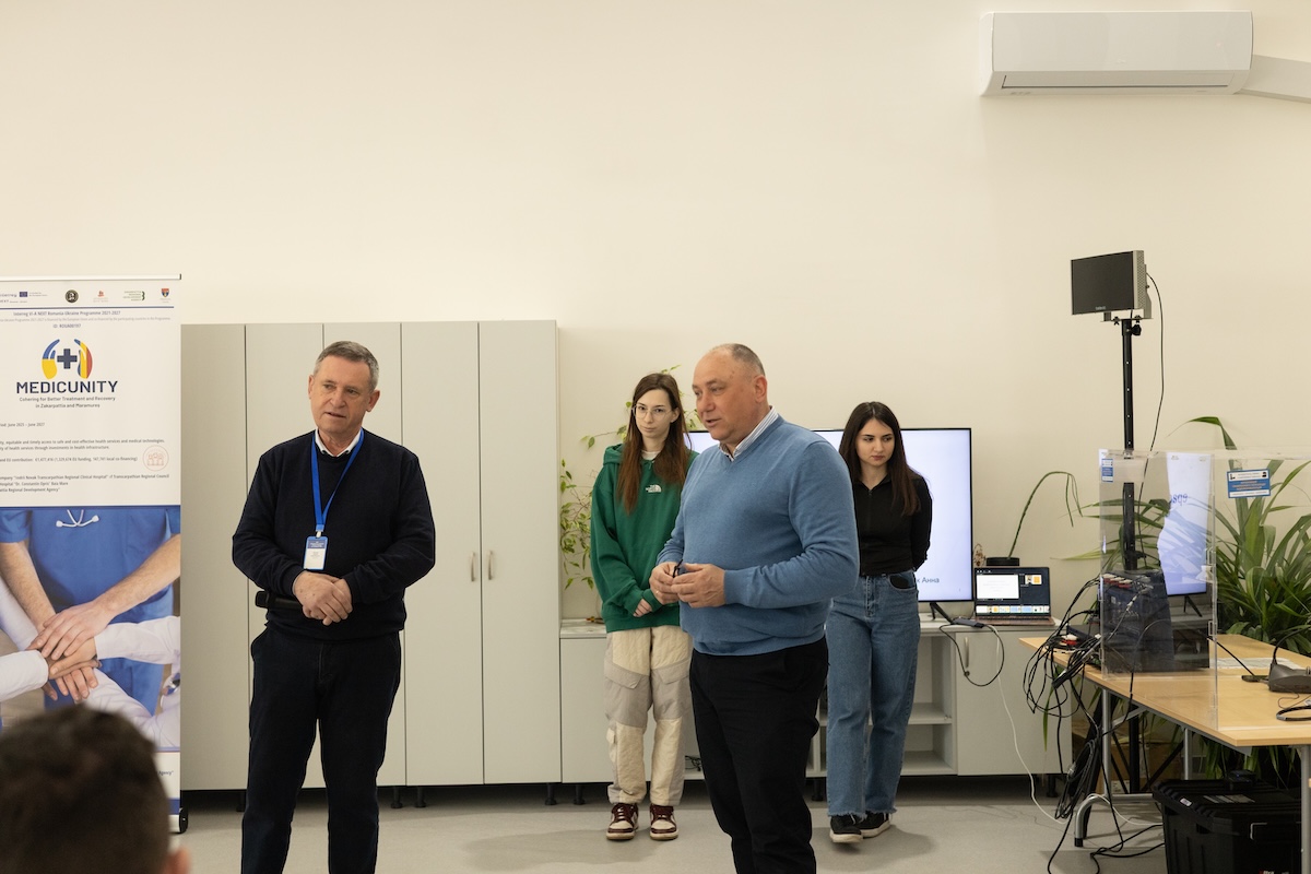 Тренінг відбувся у рамках міжнародного проєкту, спрямованого на модернізацію системи охорони здоров’я прикордонних регіонів України та Румунії. ROUA00197 MEDICUNITY – Згуртованість для кращого лікування та відновлення на Закарпатті та в Марамуреші. Проєкт MEDICUNITY спрямований на встановлення нових стандартів у сфері малоінвазивної хірургічної та урологічної допомоги, реабілітації та транскордонного співробітництва в медицині, що сприятиме підвищенню якості та доступності медичних послуг для мешканців Закарпаття та Марамурешу
