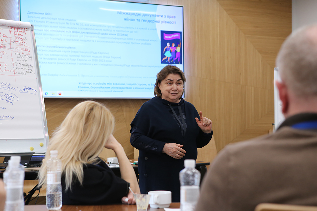 Лариса Кобелянська, експертка ради Європи з розвитку громадянського суспільства та адвокації, тренерка інформувала учасників про ґендерну складову і до вона повинна враховуватися, нагадала про те, що таке права дівчат та жінок, хлопців та чоловіків, а також зупинилася на темі протидії насильства як основи створення рівних можливостей між жінками та чоловіками.