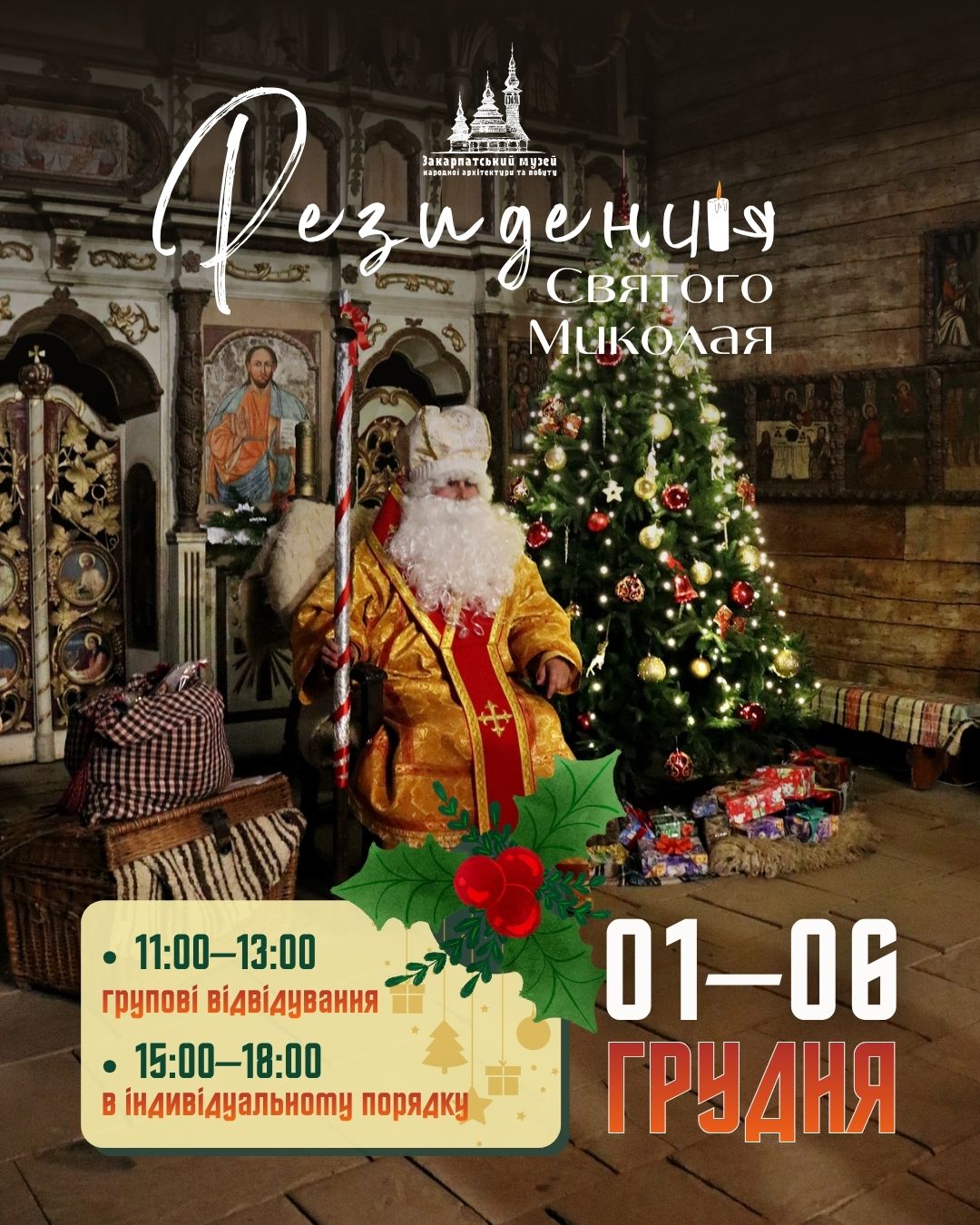 У старовинній музейній церкві в Ужгородському скансені вп’яте відкривається Резиденція Святого Миколая. Відвідати Чудотворця охочі зможуть протягом 1-6 грудня.