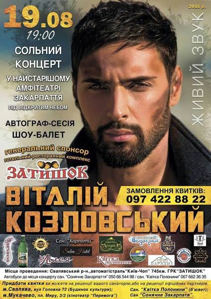 Протягом концерту артист подарує мешканцям срібної землі свої хіти та огорне неймовірною енергетикою разом зі своїм шоу-балетом. А після концерту Віталій проведе автограф-сесію з прихильниками. Початок шоу о 19:00.Квитки можна придбати на рецепціях санаторііїв та комплексів: