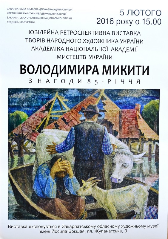 Відкриття експозиції відбудеться о 15.00 за участі представників владної, вченої та мистецької еліти з різних областей та закордону, членів родини й численних шанувальників таланту Володимира Микити, - повідомляє Управління культури Закарпатської ОДА.