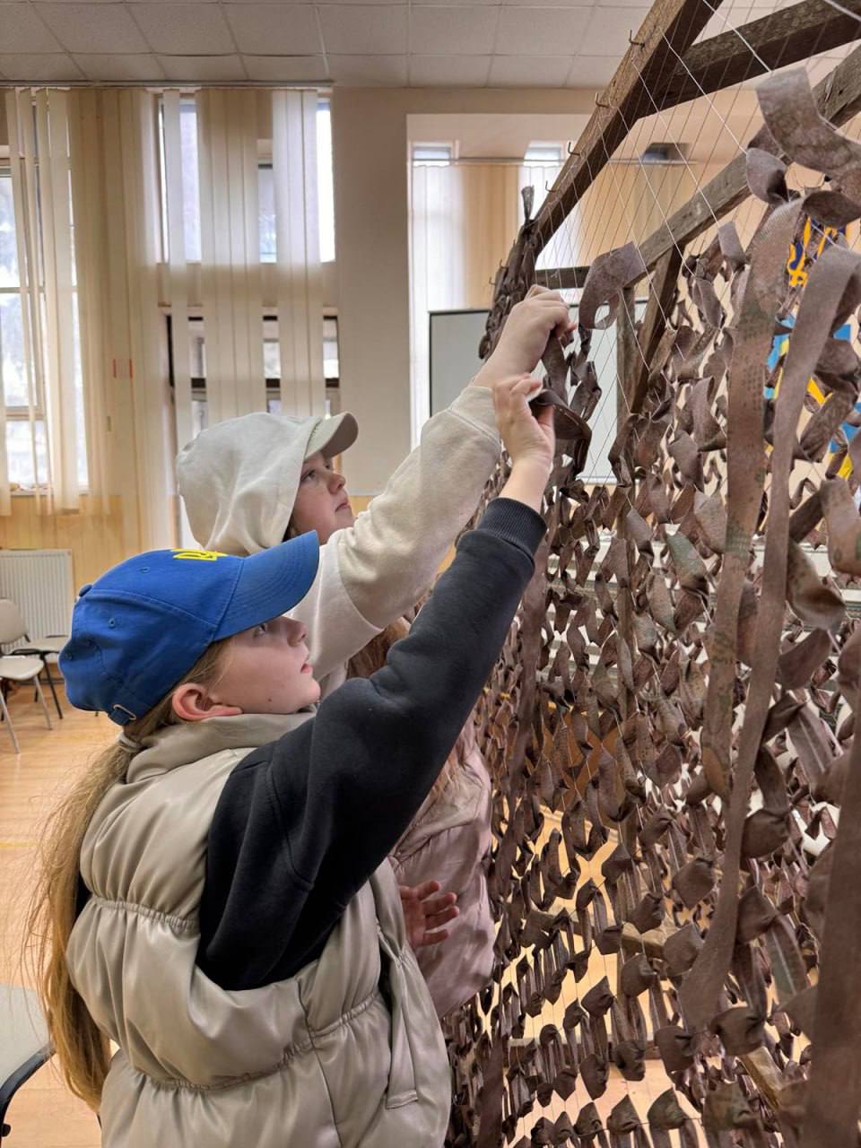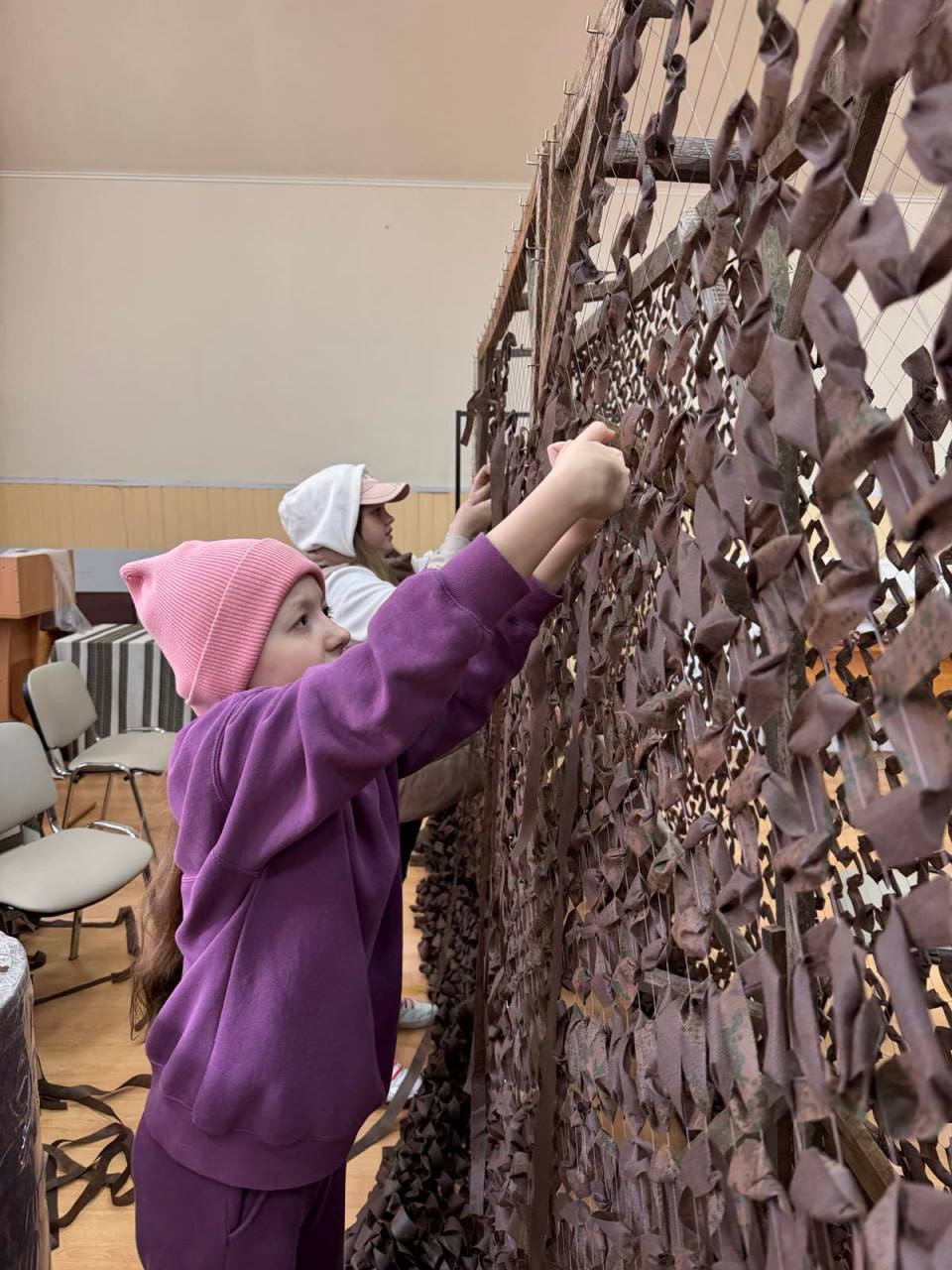Чотирикласниці, окрім допомоги тканиною, долучилися і руками – спробували плести сітки самостійно. Кажуть, що спершу було важко, але потім все легше й легше. Дівчатам сподобалось і вони будуть продовжувати допомагати нашим військовим. Наступна ціль маленьких волонтером – 25 тисяч гривень на дрон для військових. Дівчата дуже хочуть, щоб Україна найшвидшим часом перемогла.
