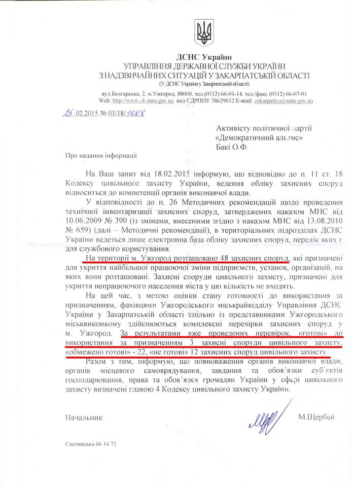 Таку відповідь отримав активіст Ференц Бакі від начальника Управління ДСНС України у Закарпатській області М. Щебрея.