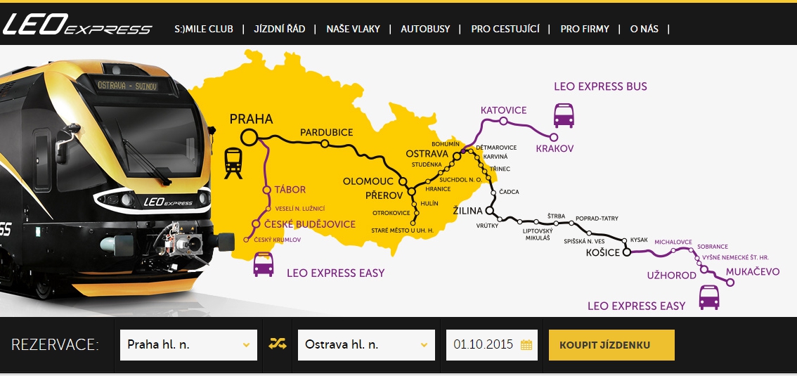 Відзначимо, що з Кошице поїзди LEO Express курсують у напрямку Праги, зупиняючись на станціях Жиліна, Богумін, Острава. З 14 грудня поїзди будуть зупинятися в Пряшеві, Колине і Забржегу-на-Мораві. Зі станції Богумін компанія LEO Express забезпечує регулярні автобусні рейси до Катовіц і Кракова.