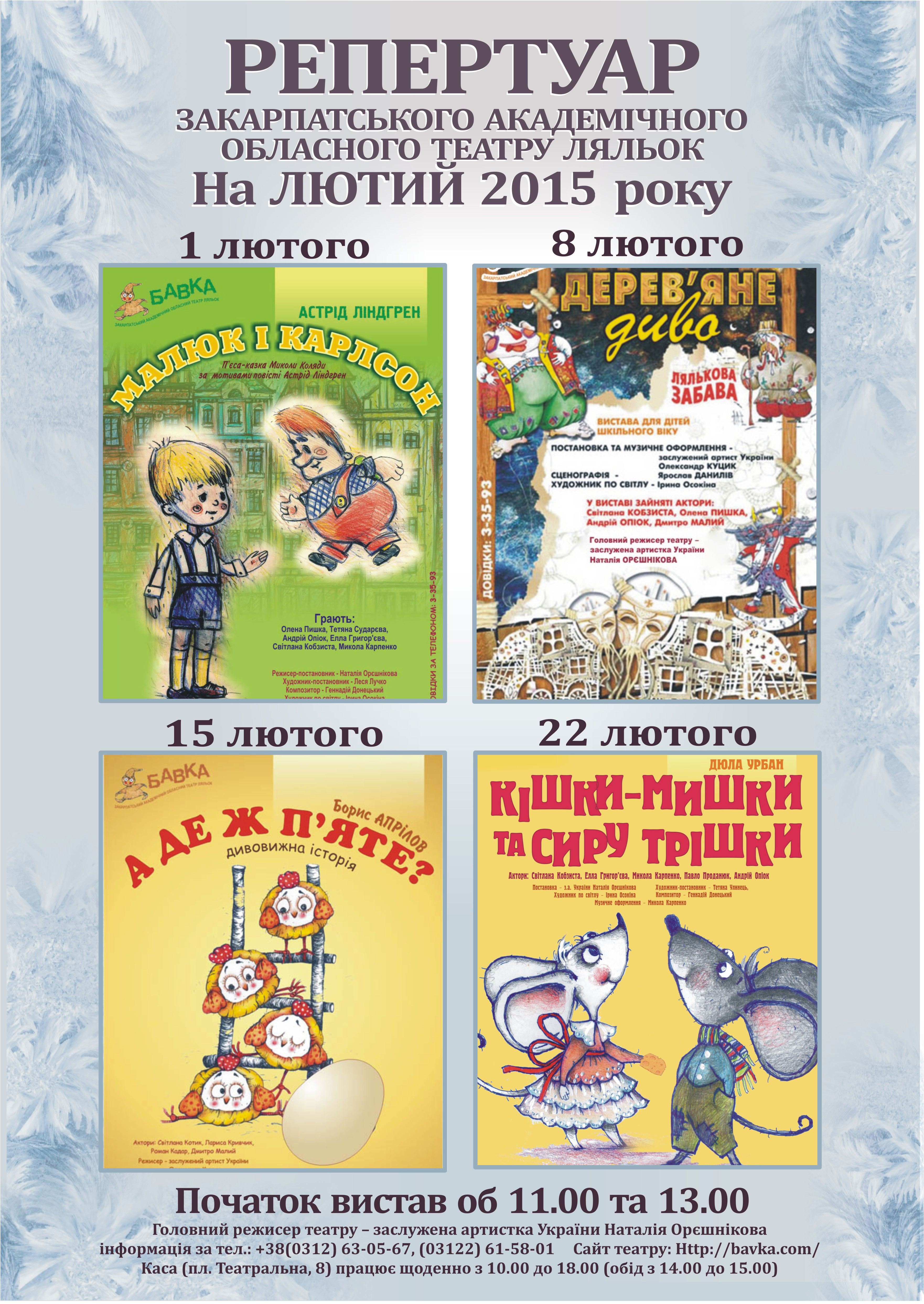 Репертуар театру ляльок „БАВКА” на лютий 2015 року буде цікавим та різноманітним.