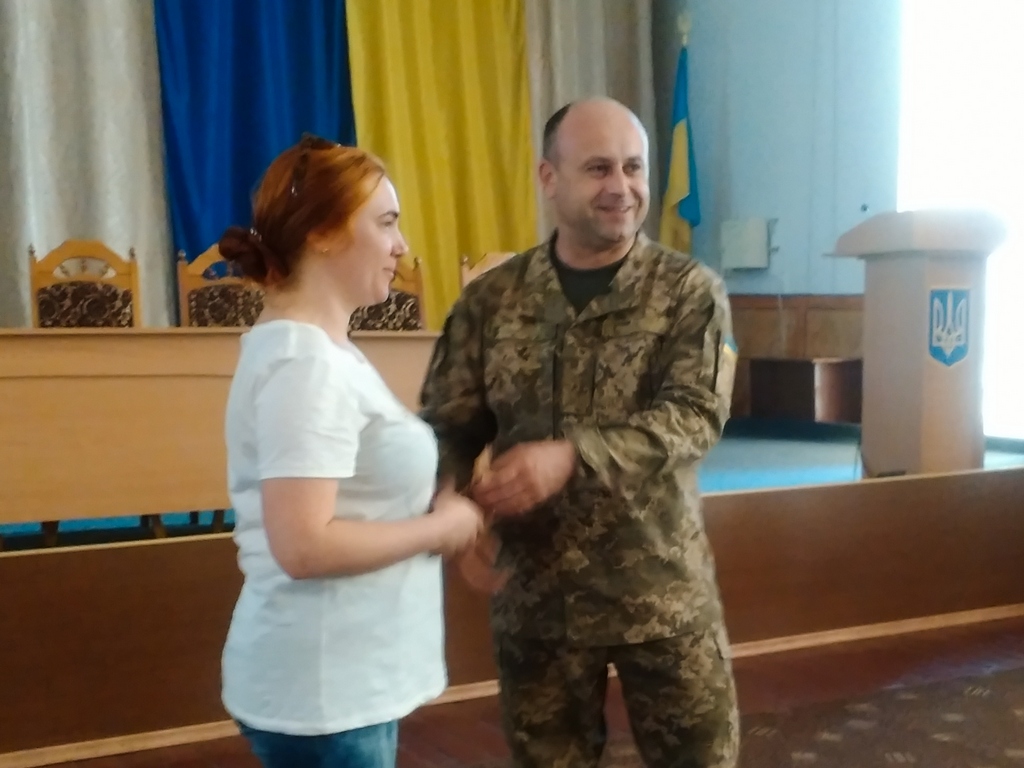 Із рук військового комісара волонтерка отримала медаль «За сприяння Збройним силам України». Розчулена теплим прийомом, вона подякувала за те, що її зусилля цінують.