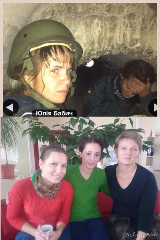 "Пам'ятаєте Кнопку з Дебальцевого? Тендітна дівчинка-воїн, що готувала хлопцям під обстрілами. Цю фотографію постили волонтери та просили за неї помолитися! Батьки не знали, що вона на війні! Ми молилися! І от вона - приїхала! Це наша смілива журналістка Галина Сернівка. Знову з нами!", - написала жінка у повідомленні.