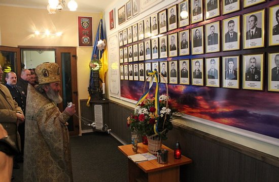 В присутності керівництва УМВС і численних гостей-ліквідаторів аварії на ЧАЕС стеллу освятив й провів молебень за душами усопших «чорнобильців»о.Миколай Кабацій.