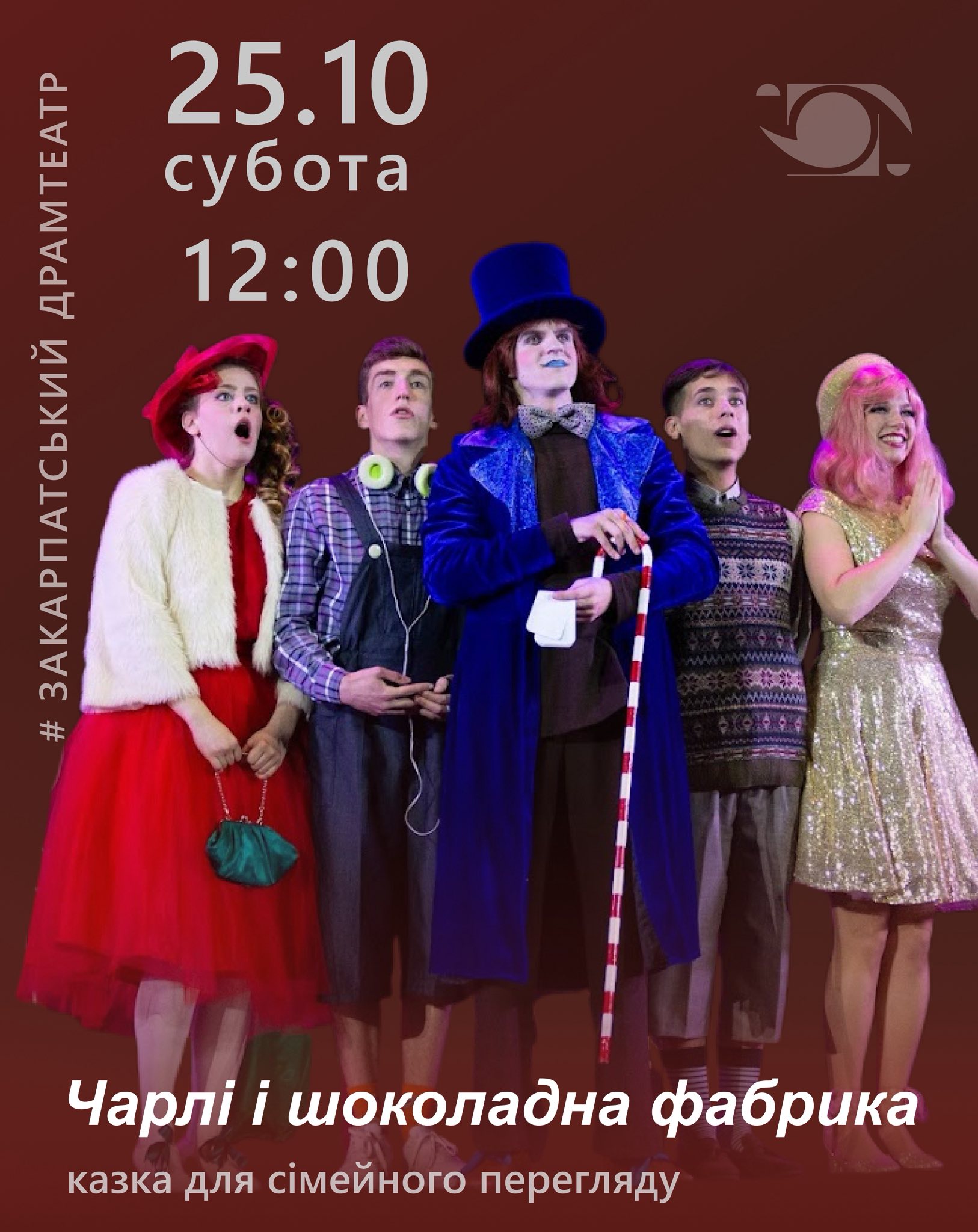 25 жовтня – «Чарлі та шоколадна фабрика», казка для сімейного перегляду від режисерки-постановниці Яни Богомолової