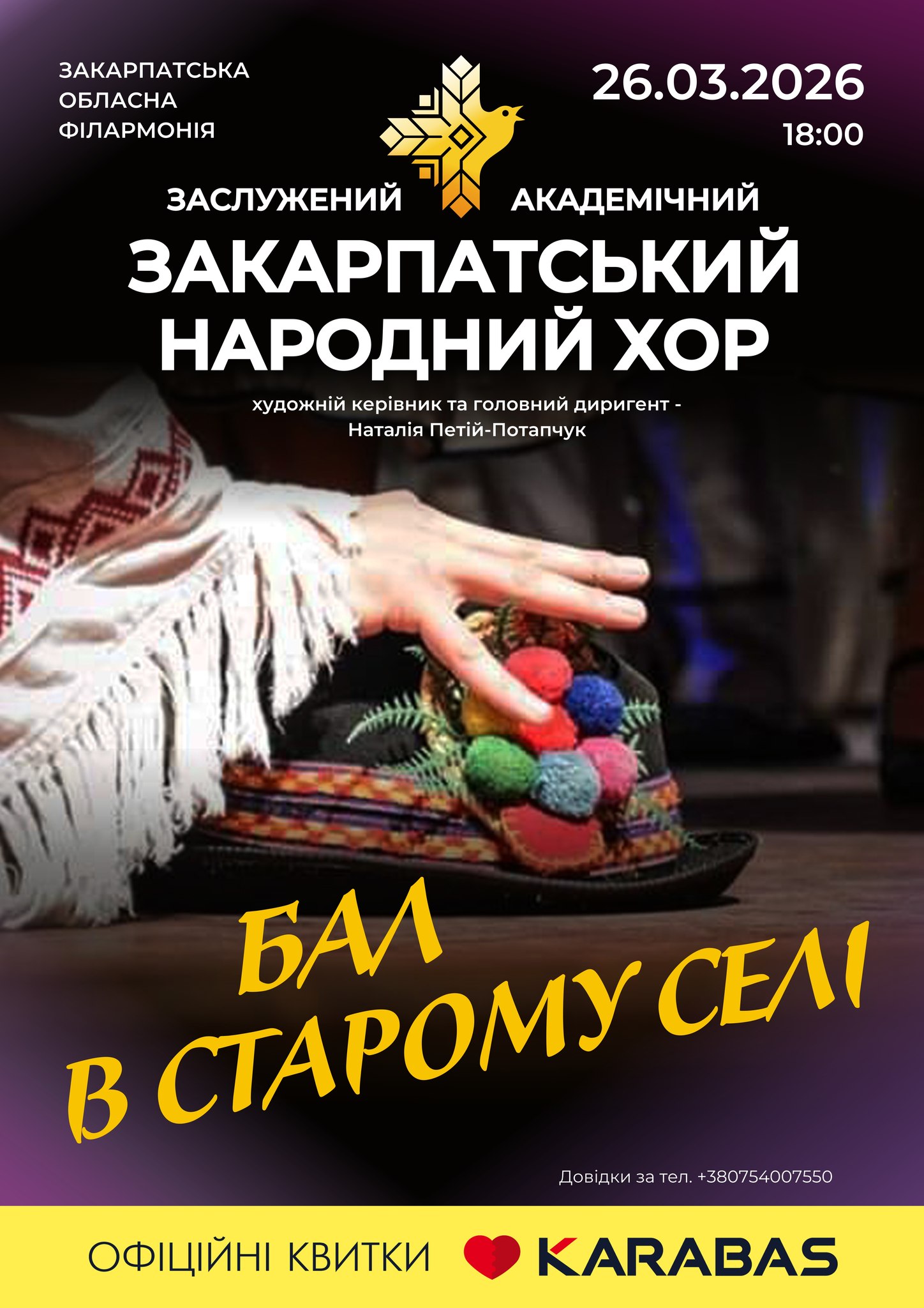 У Закарпатській обласній філармонії 26 березня Закарпатський народний хор презентує фольклорну програму «Бал в старому селі». У програмі – композиції на основі народних традицій Ужгородщини.