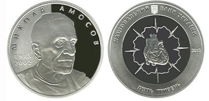 Національний банк України, продовжуючи серію «Видатні особистості України», 26 листопада ввів в обіг пам’ятну монету номіналом 5 гривень зі срібла, яка присвячена легенді світової науки, видатному вченому в галузі медицини та біокібернетики, громадському діячеві, академіку Національної академії наук та Академії медичних наук України, засновнику і директорові Інституту серцево-судинної хірургії - Миколі Михайловичу Амосову. Микола Амосов врятував тисячі людей завдяки великій любові до них, почуттю відповідальності за їх життя.