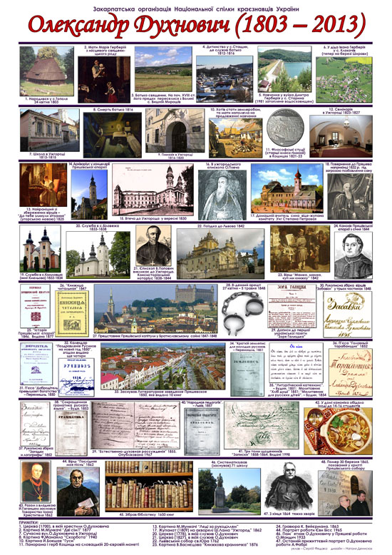 Закарпаття відзначатиме 210-річчя Духновича 24 квітня. До цієї дати закарпатські краєзнавці готують ґрунтовно. Зокрема Сергій Федака підготував та видав Календар з найбільш важливим датами у житті та творчості Духновича. «Це привід привернути увагу до відомої особистості, - каже Сергій Федака. – На Календарі у 48-ми кадрах відображено яскраві моменти з життя і творчості Олександра Духновича. Зокрема, місця, де минули дитячі та підліткові літа Духновича, де він навчався. Показано початок творчої біографії, бурхлива громадсько-політична діяльність, 8-денний арешт, заснув літературного товариства на Пряшівщині тощо. Робота стане у нагоді для сучасних студентів, які ніби все знають, але конктрено про Духновича сказати не завжди можуть».
