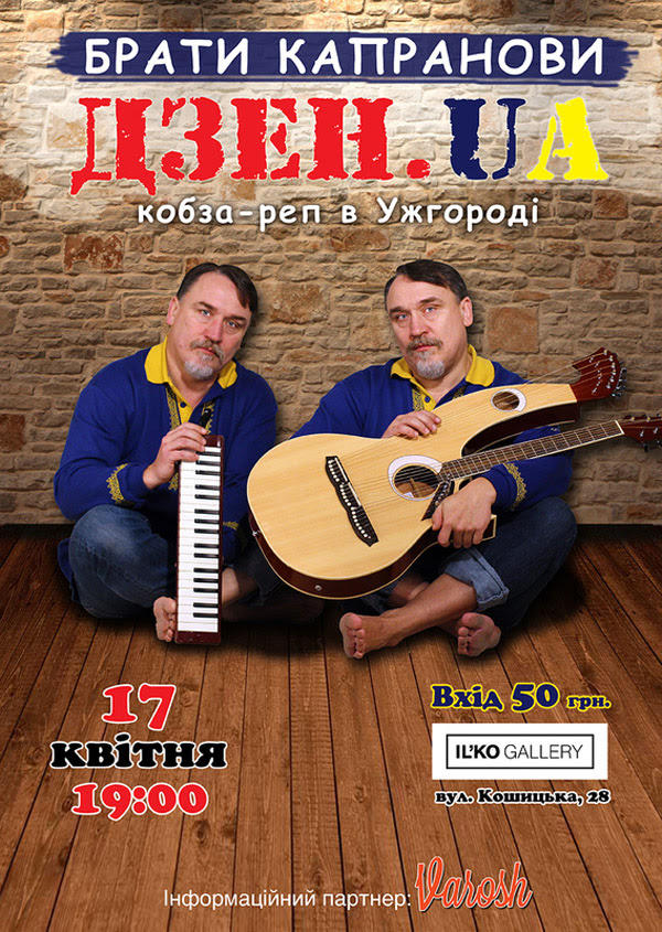 17 квітня 2014 року о 19:00 в “Мистецькому центрі "Галерея ІЛЬКО" відбудеться вечір у стилі кобза-реп від братів Капранових. Українські письменники та видавці Брати Капранови презентують свою музичну програму "Дзен.UA".