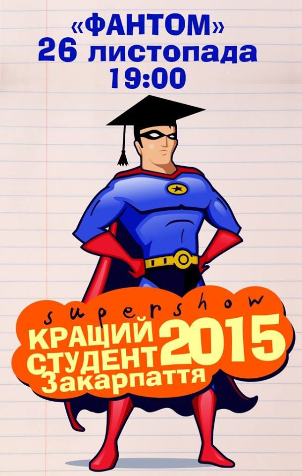 ср, 25/11/2015 - 11:18 Шоу "Кращий студент Закарпаття 2015" пройде у четвер, 26 листопада о 19:00 в клубі "Фантом". Участь у фінальному шоу візьмуть ті хлопці, які попередньо пройшли відкритий кастинг. Довідки: 050 139 77 60 Автор: Yaryna Новини інших ЗМІ Коментувати Ваше ім'я Електронна пошта Вміст цього поля є приватним і не буде доступний широкому загалу. Коментар Про текстові формати Comment Дозволені теґи HTML: <em> <strong> <cite> <code> <ul type> <ol start type> <li> <dl> <dt> <dd> Рядки й абзаци переносяться автоматично. Адреси вебсторінок та адреси електронної пошти автоматично перетворюються у посилання. CAPTCHA Мета цього запитання — довести, що ви є реальним відвідувачем і запобігти автоматизованим розсиланням спаму. Зберегти Залиште це поле порожнім